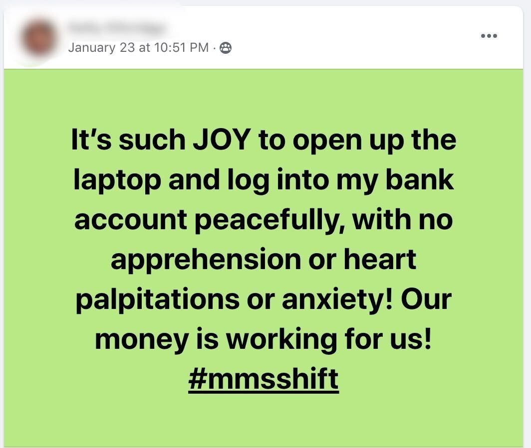 Celebrating the fact that 18 weeks ago (and for many years before that) my finances were a mess. Before joining Money Mindset Shift, I was scared of money. Scared of not having enough money. Running on autopilot, doing what I thought I “should” do (especially when it came to what others would expect me to do). Piling unnecessary pressure onto my shoulders. Burdening myself with things I didn’t even need to worry about, and then feeling like I would crumble under the weight.
